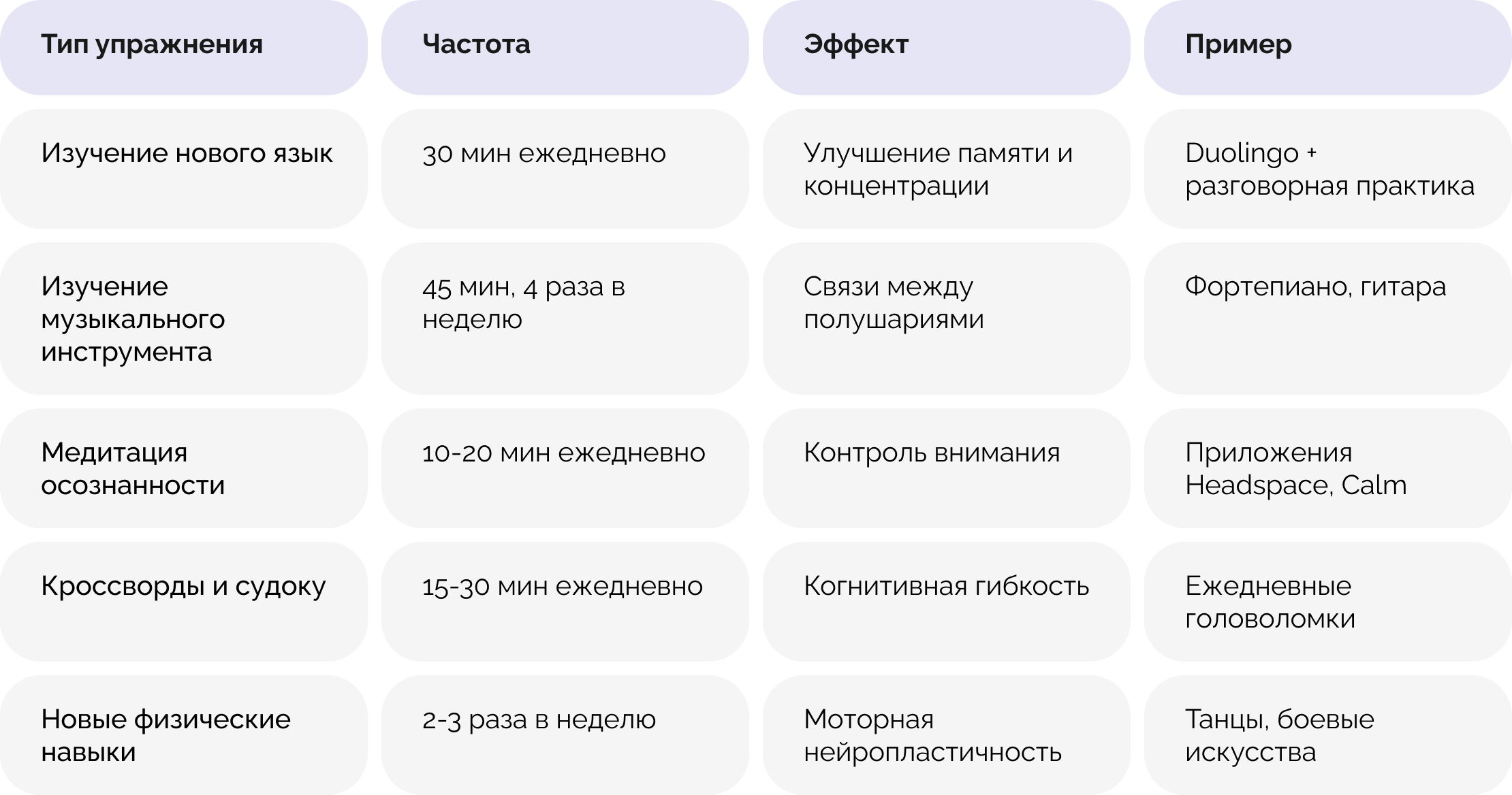 - Разнообразие умственной деятельности — читать‚ играть в головоломки‚ учить языки․